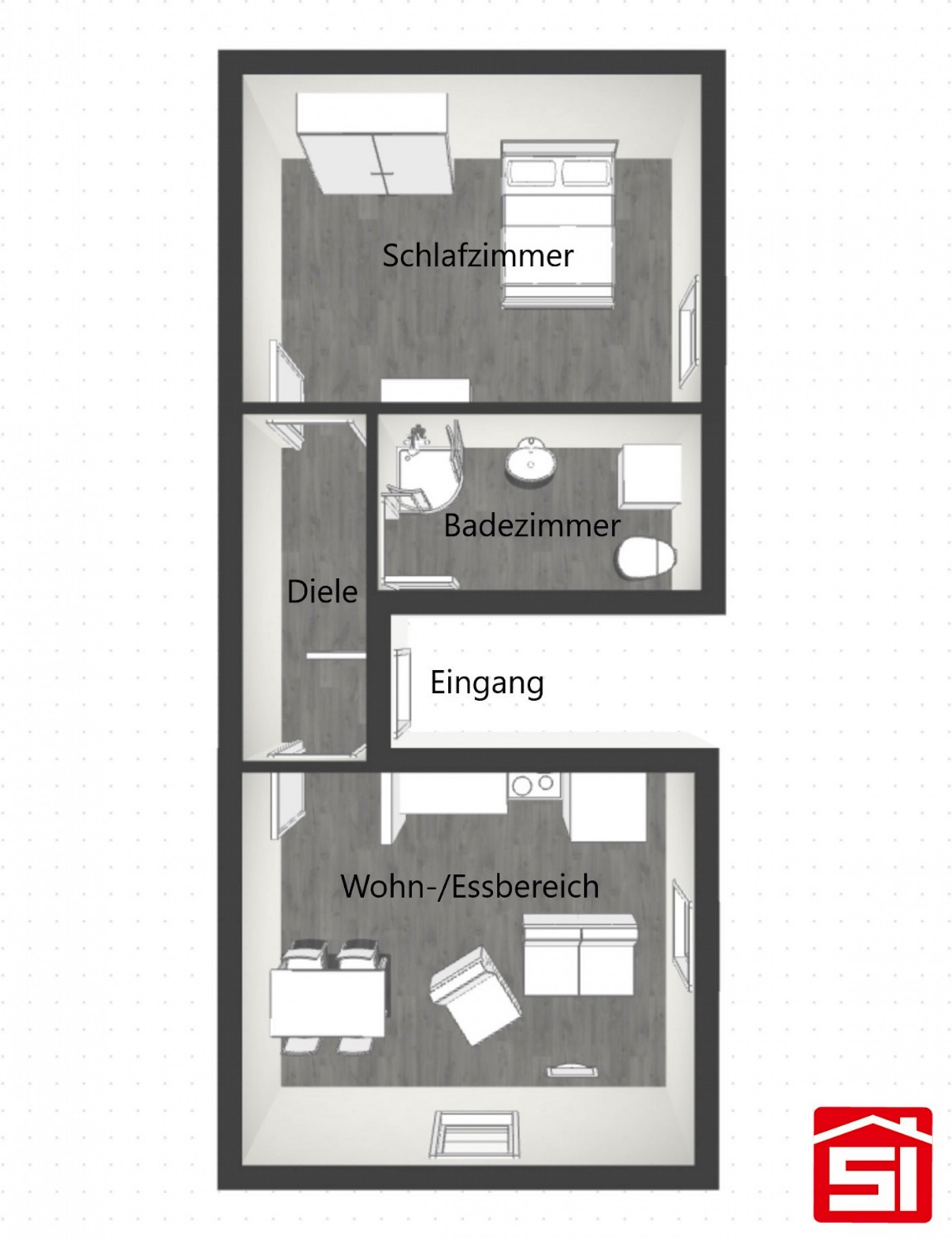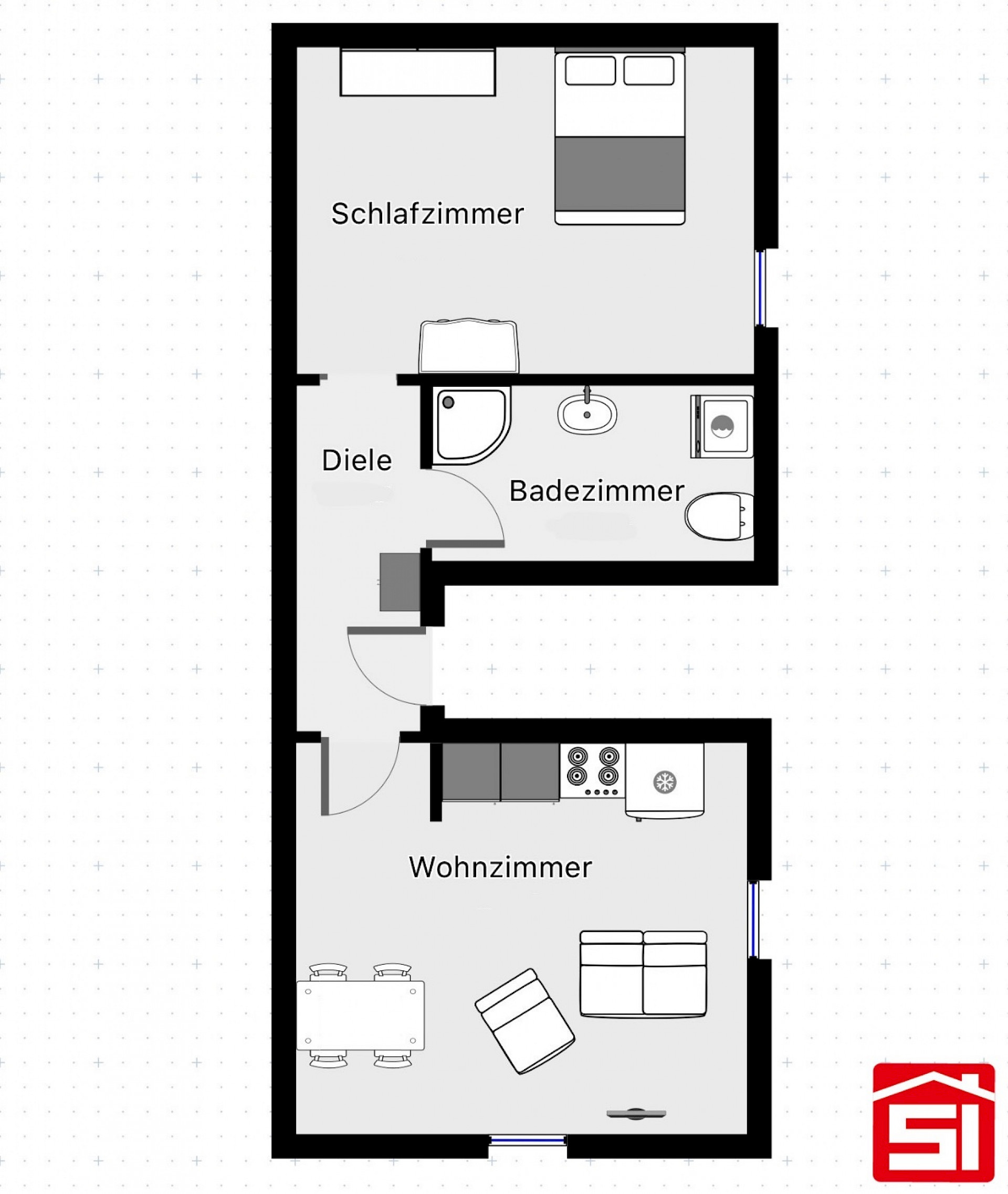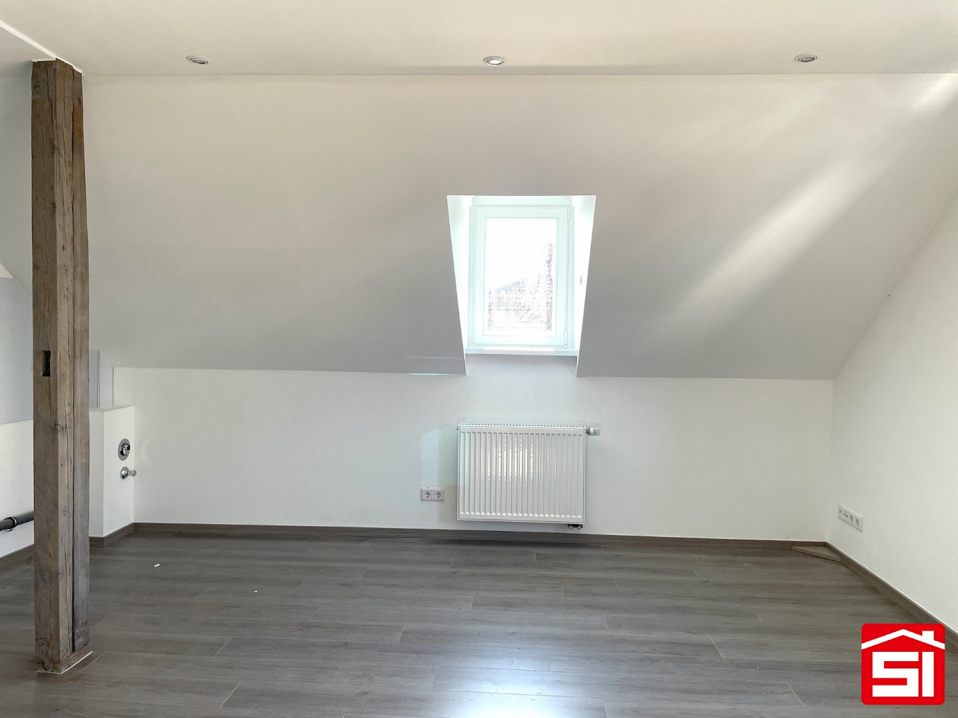 mehr …Die 2-Zimmer-Dachgeschosswohnung wurde kernsaniert und besticht durch den neuen Fußbodenbelag, das neu erschaffene Badezimmer mit Lichtkuppel über der Dusche sowie einem geräumigen Wohn- und Küchenbereich. Der Küchenbereich bietet Platz für die eigene Küche, welche nach dem eigenen Geschmack aufgebaut werden kann. Der Flurbereich bietet Staumöglichkeiten für die tägliche Garderobe und einen Schrank. Die Wohnung wird frisch renoviert übergeben und freut sich nun auf ihre neuen Bewohner. Im Keller befindet sich die gemeinsame Waschküche zum Aufstellen der eigenen Waschmaschine. Ein separater Kellerplatz rundet das Angebot ab.