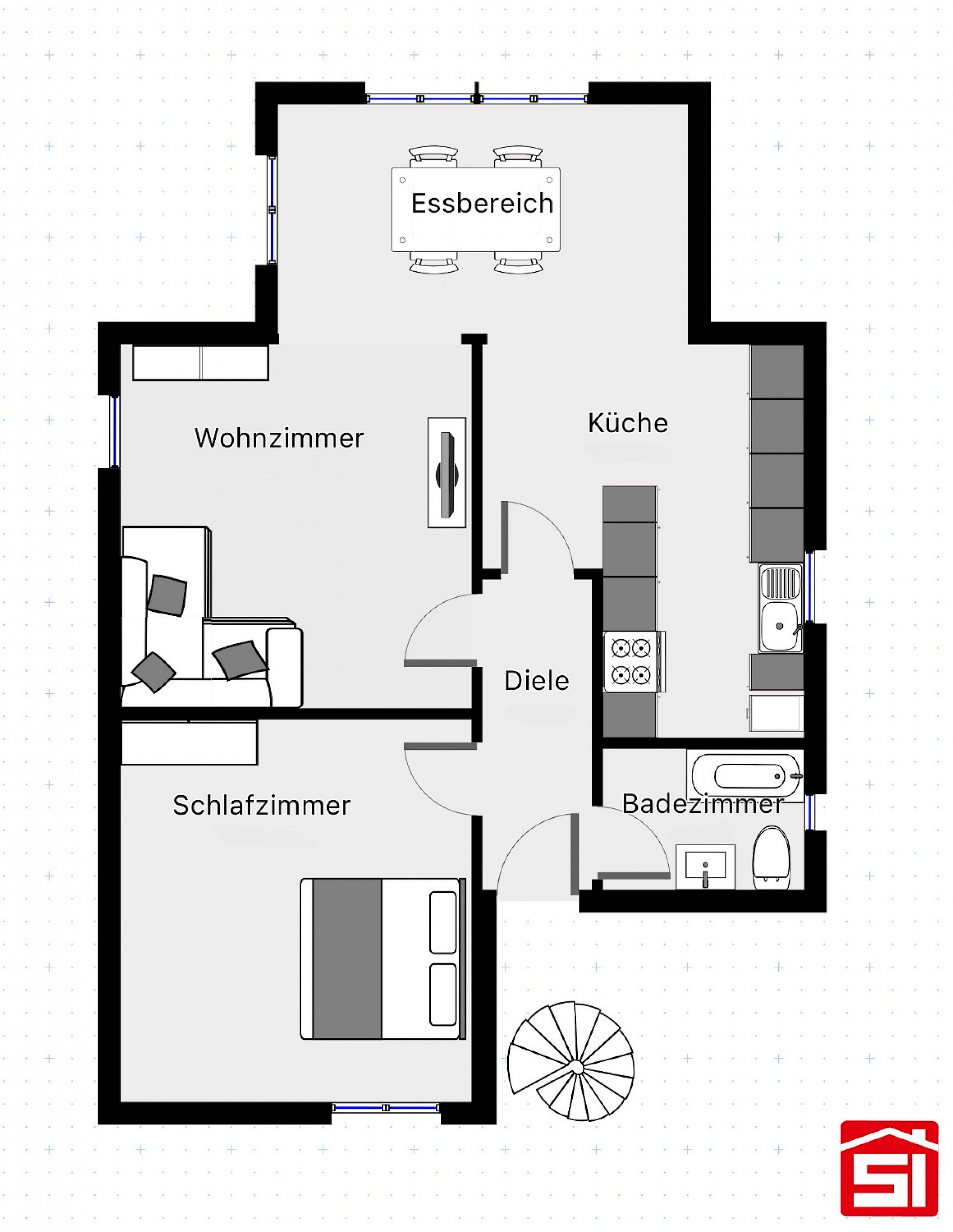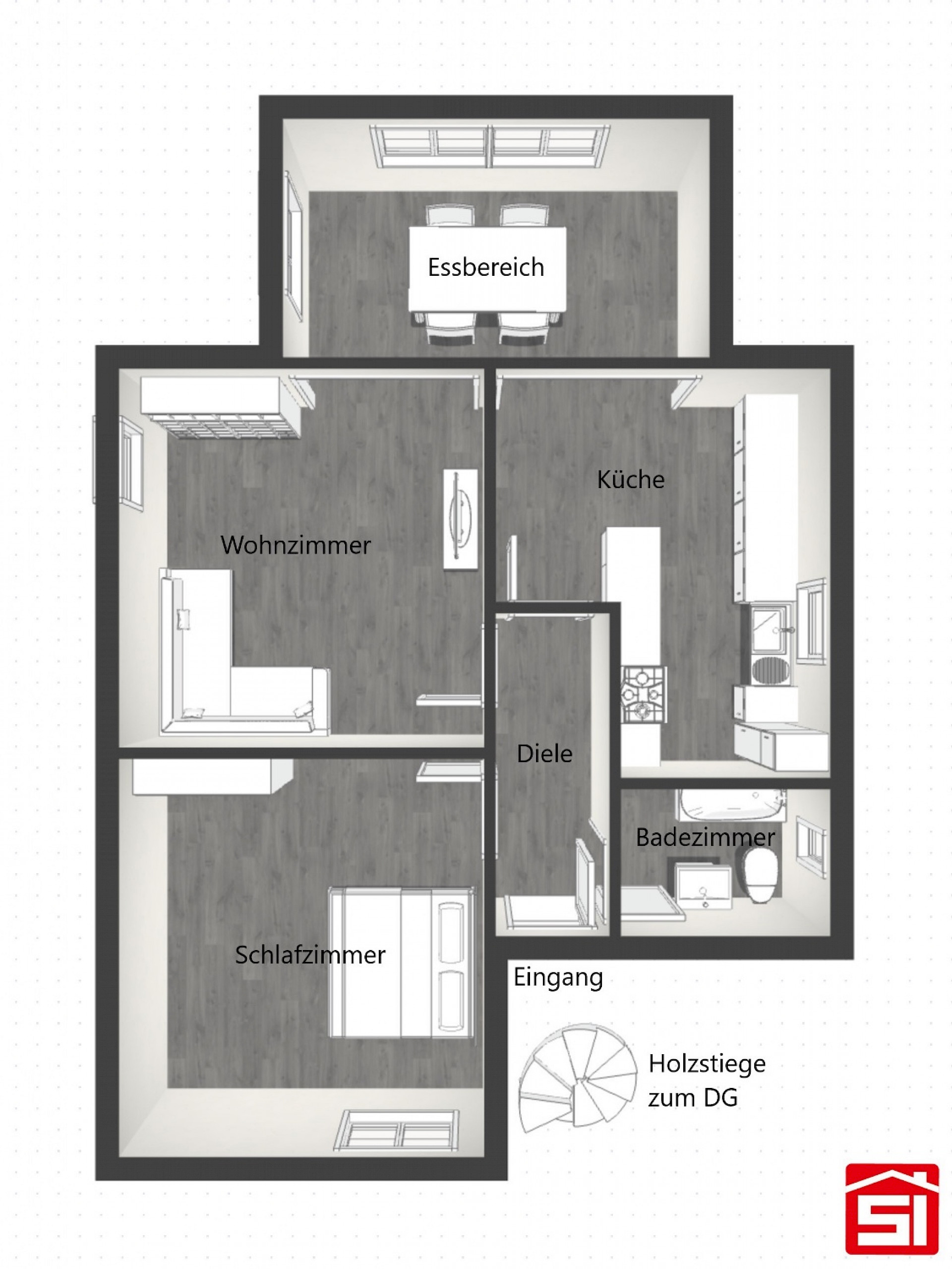 Die ca. 79 m² große Maisonettewohnung setzt sich so zusammen
