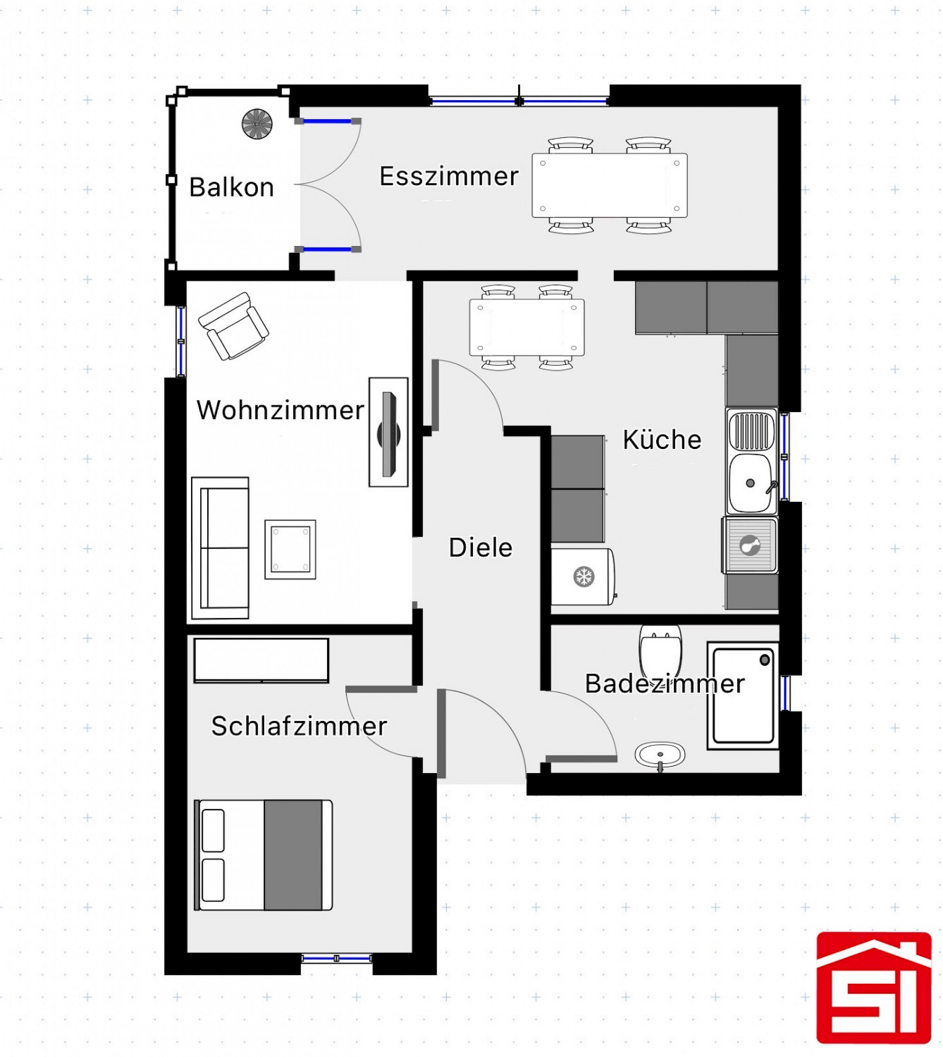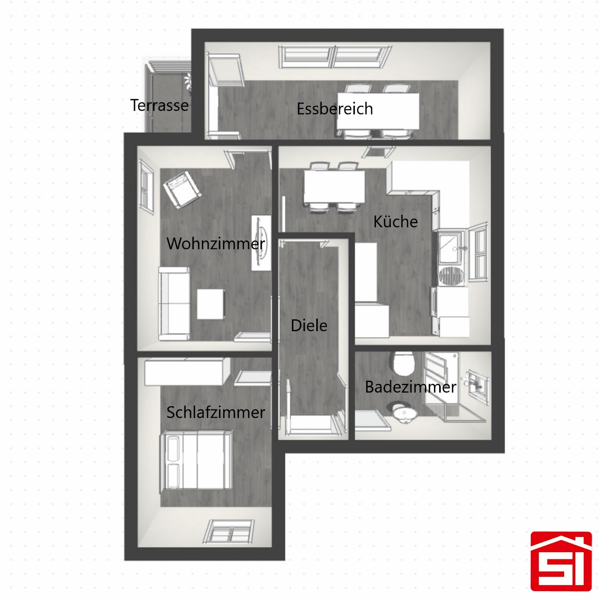 - Essbereich (ca. 11 m²) mit praktischer Durchreiche zur Küche sowie direkt angeschlossenem Terrassenbereich
