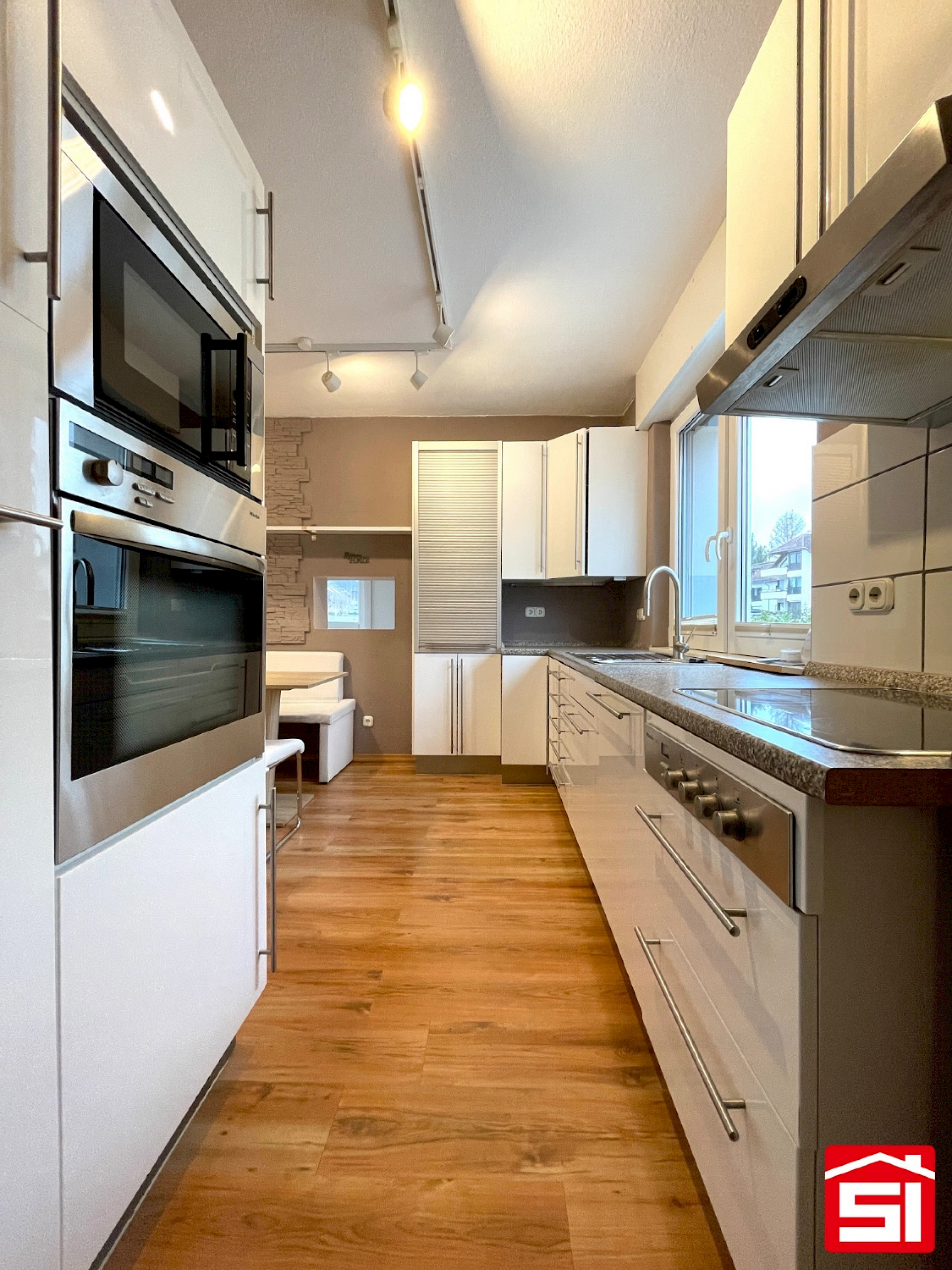 - voll- und hochwertige Einbauküche mit vielerlei Schrank- und Verstaumöglichkeiten. Miele und Samsung-Elektrogeräte (Backofen, Mikrowelle, Kühlschrank, Kochfeld, Geschirrspüler). Praktischerweise befindet sich im hinteren Teil der Küche eine