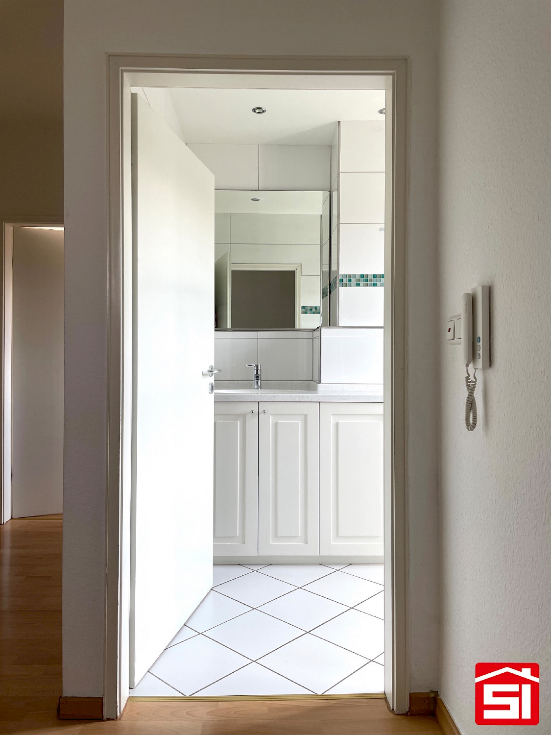 Hier befinden sich insgesamt 3 Schlaf- und/oder Arbeitszimmer unterschiedlicher Größe. Eines der Zimmer stellt einen Einbauschrank mit vielen Sortier- und Ablagemöglichkeiten bereit. Das Badezimmer auf dieser Ebene wartet mit hochwertigen Fliesen, zwei Waschbecken, zahlreichen Unterbauschränken sowie einer Dusche mit Glastür und einem herrlichen Blick ins Freie auf. Praktisch: eine "versteckte" Nische unterhalb des Treppenaufgangs stellt eine nützliche Abstellmöglichkeit dar.